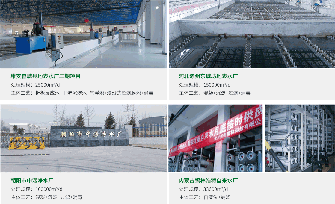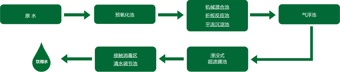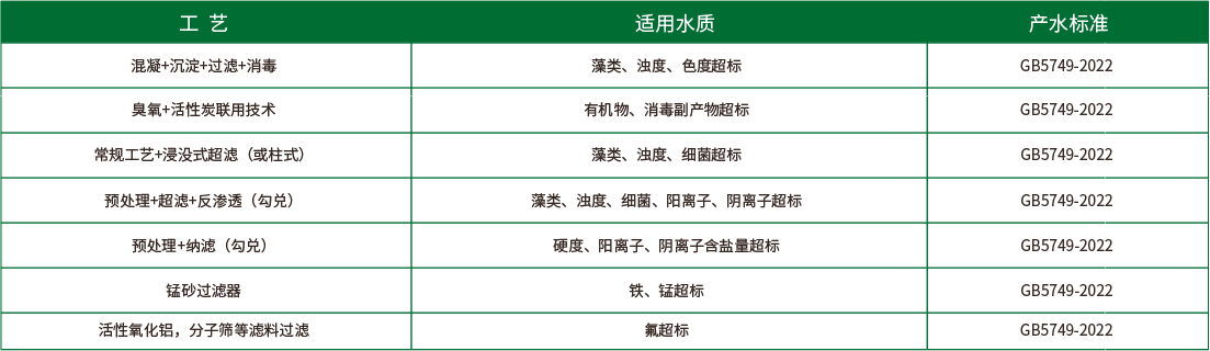 適用條件:水質(zhì)受溫度、降雨影響,波動較大,水源污染嚴(yán)重,易于生長藻類和微生物,推薦采用膜處理工藝